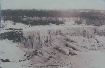 Margaret writes: Her mother had a cousin living in Niagara Falls that year. She told the family that she and her neighbours woke up in the night feeling something was wrong. It took a while but they finally realized that it was the lack of noise. They had all become so used to the roar of the falls that the silence was unusual enough to alert their senses. Of course, at that time nearly all the houses were near the falls. Can you imagine walking on Niagara Falls?