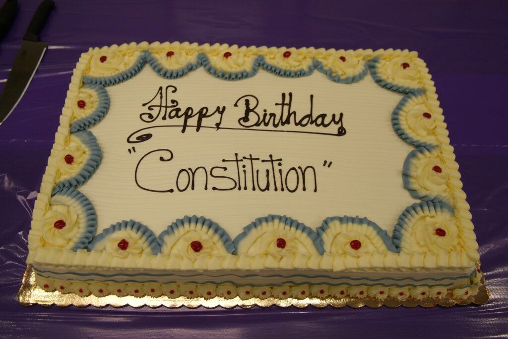 Per the National Archives: “Twenty years ago, Congress passed a law recognizing September 17 as Constitution Day.  On that date in 1787, the delegates at the Constitutional Convention in Philadelphia put their signatures on the Constitution of the United States.  Local celebrations of Constitution Day started over 100 years ago, but it didn’t become federal law until 2004.”