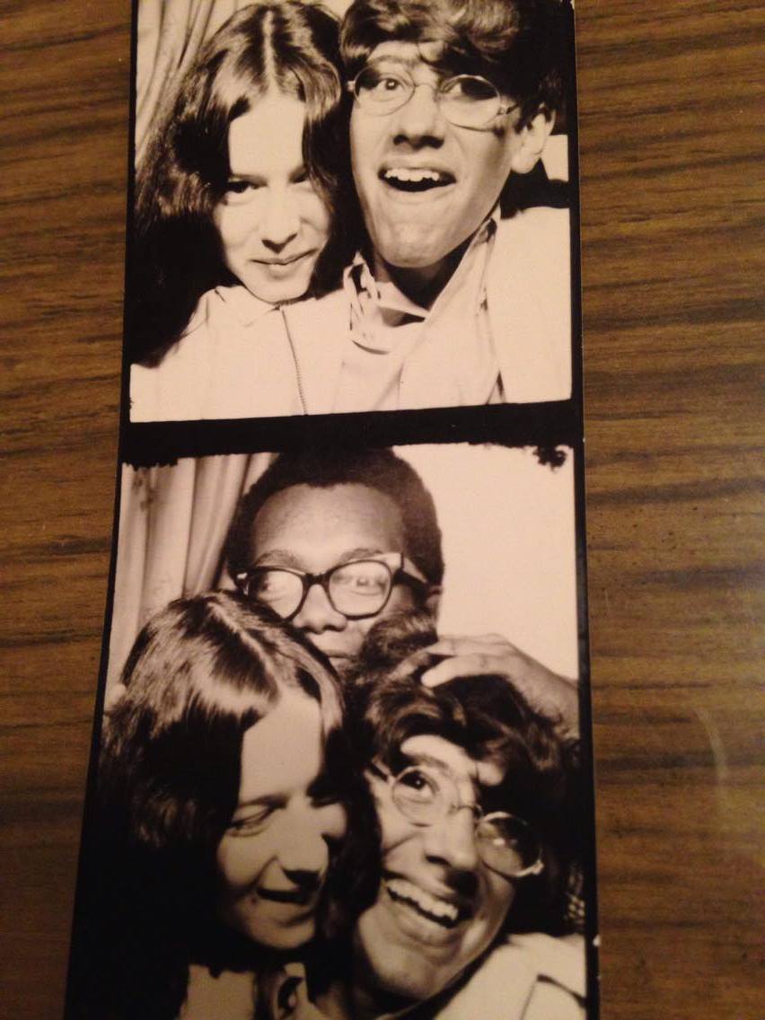 These were pictures, undoubtedly taken at a Woolworth’s, not terribly far from Binghamton Central High School, which is now, and since 1982, Binghamton High School. This is Michele, Steve, and I doing what one does in a tiny room, the camera flashing every ten seconds or so. I probably never saw these since they popped out of the side of the booth over 45 years ago.