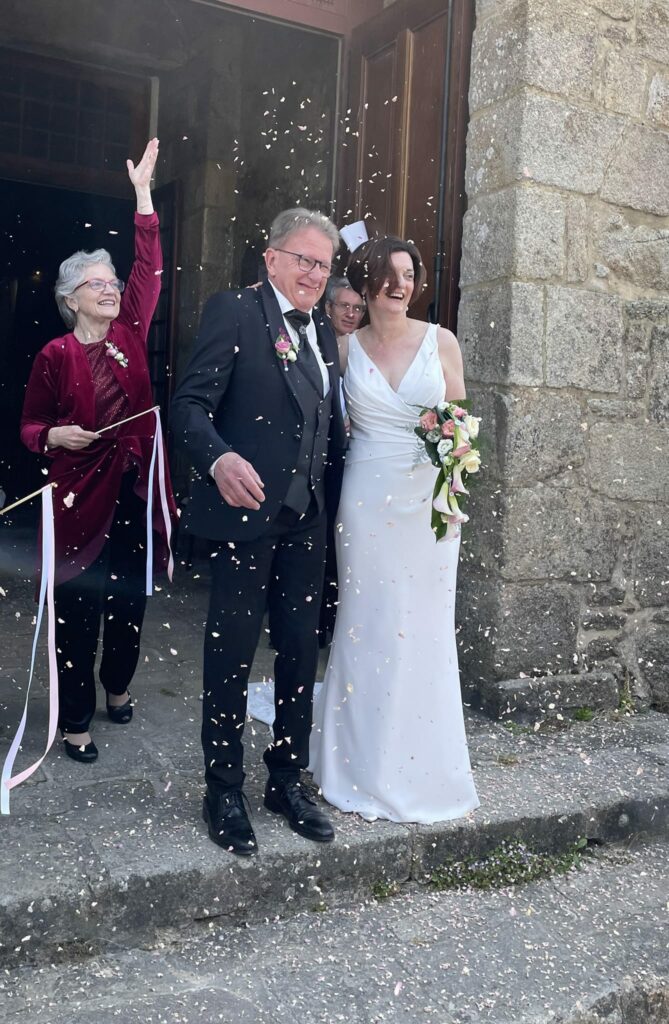 May 19: Deborah and Cyrille are getting married today! After my wife and I eat breakfast, we check out of our second hotel on this trip. We drive from Auray to Erdeven and park in the lot of Cyrille’s company.