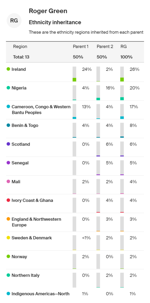 Ancestry.com recently sent me something called an ethnicity inheritance.