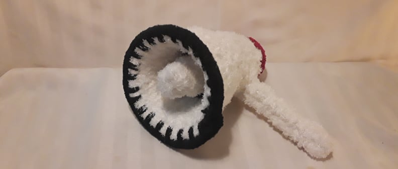 The angle of the photo may not give you a good vantage point, but the object is a megaphone. In fact, it is a replica of one she owns. (What? You don’t own your own megaphone?) Oh, here’s another shot, by the artist.