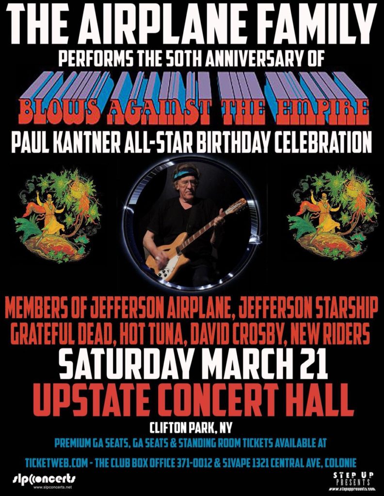 Aside from the day-to-day activities, there have been a few events I have missed. The Blows Against the Empire tour was canceled before it got to Clifton Park, near Albany. It wasn’t that I was desperate to see that show. But I was going to go with my oldest friend from my college days. And he was going to pay!