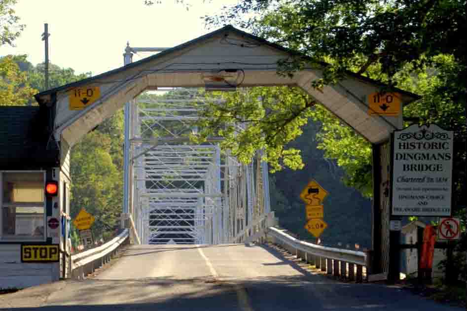 I was navigating via the mapping device on my wife’s phone. On PA 209, I couldn’t tell quite where to go, so I directed her left, across the Delaware River into New Jersey. She wondered if she should turn around. I said, “Nah.” We could take Route 206 – or was it 209? – and eventually cross a bridge back into Pennsylvania. However, we ended up crossing what I believe was Dingman’s Bridge, a narrow and old, nay, historic construction. At the end, there was signage indicating that we were to pay $2 for the privilege of crossing this private bridge, with a fellow present to collect the fee. No E-Z Pass either.