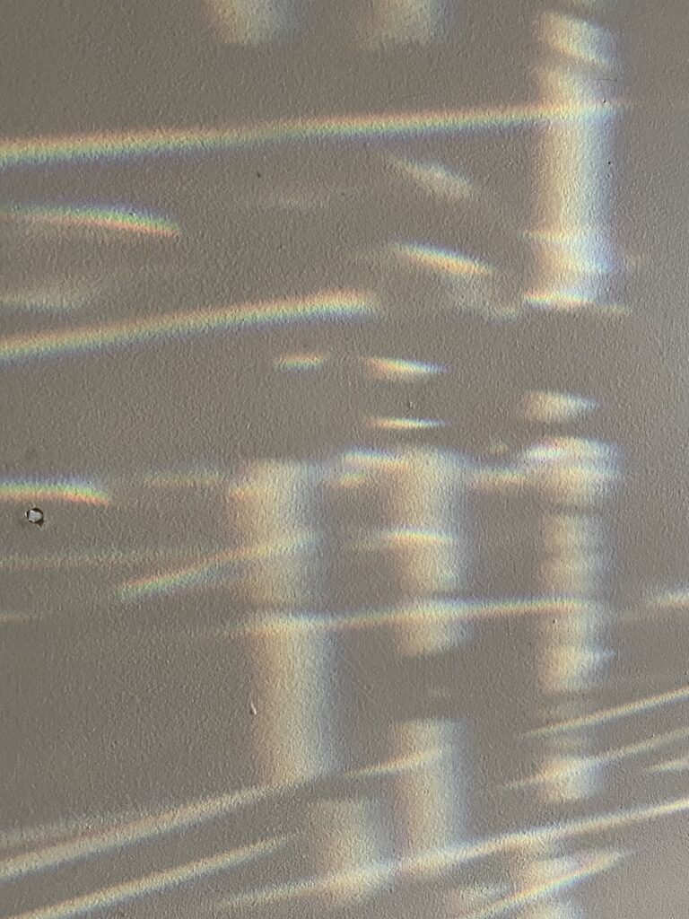 Some days, I must hold on to a sliver of hope to get by. Oddly, some of it comes from seeing rainbows in my house. I’ve mentioned how wonderful they are and have even shown a picture. But the effect depends on the direction and intensity of the sun’s peeping through.
