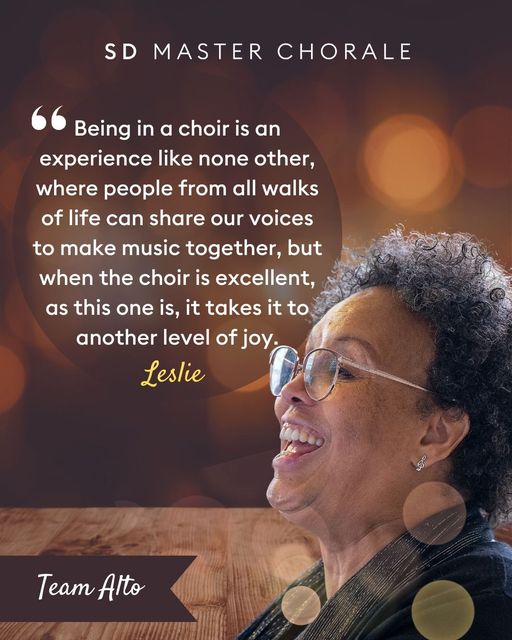 This picture from the San Diego Master Chorale epitomizes her joy of music. So, happy birthday, Leslie. May music always be in your heart; I know that it will.